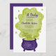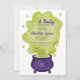 Convite Chá de fraldas verde de halloween com caldron roxo