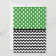 Convites de chá de bebê, giros e na moda, com bolinhas brancas sobre verde no topo e um padrão zigue-zag chevron preto e branco no fundo. Personalize com os detalhes do chá da Mamãe e escolha o tipo de papel também!