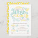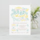 Convite moderno e elegante para chás de fraldas, com tipografia de rico e espirais brilhantes em amarelo brilhante e verde-menta. Ideal para qualquer sexo, design neutro em relação ao gênero. Um padrão adorável nas costas.