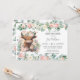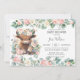 Personalize este convite de chá de fraldas chic com os detalhes do chá de fraldas de forma fácil e rápida, basta pressionar o botão Editar usando as ferramentas Design para reorganizar e formatar o estilo e a colocação do texto. Este convite apresenta uma adorável vaca doce, peluda e frágil, entre as folhas rústicas de cor d'água, eucalipto, adornada por belos rosas cor-de-rosa, blush e jardim de marfim. Perfeito para receber seu novo pacote de alegria. Itens correspondentes disponíveis no repositório! (c) O feliz Cat Studio.