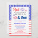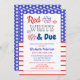 Convite vermelho, branco e chá de fraldas devido. O plano de fundo é branco, mas pode ser personalizado para uma cor de sua escolha.