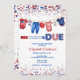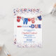 Celebre o seu pirata-fogos com este tema de chá "Vermelho, branco e devido" patriótico! Esta charmosa design de aquarela apresenta uma linha de tecido vermelha, branca e azul pendurada no topo, adornada com roupas adoráveis de bebê em cores clássicas nos EUA, estrelas de aquarela cercando o layout, adicionando um brilho caprichoso e festivo. Perfeito para um chá de fraldas de verão, 4 de julho, reunião tematizada, festa temática de CHURRASCO, ou qualquer celebração acolhendo um novo pacote de alegria com estrelas, listras e muito amor.