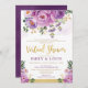 Ajude a comemorar os futuros pais a atravessar a distância com este belo convite para chás de fraldas. O design apresenta bonito aquarelas roxas e verde e verde-ouro.