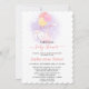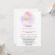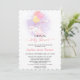Design de cartão elegante com coelho bonito com balões coloridos, caligrafia moderna "é menina" e "chá de fraldas", em fundo branco. Nas costas, as flores cor-de-água rosa e as folhas verdes. Use a ferramenta Personalizar para adicionar suas informações. Para obter itens correspondentes, visite meu Virtual e Drive by Chá de fraldas Collection.