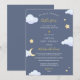 Um chá de fraldas virtual é perfeito quando os entes queridos não podem estar juntos, mas ainda querem chá para que os pais estejam com amor e presentes para se prepararem para a chegada do seu bebê. Este Chá de fraldas de Longa Distância por Convite por Correio, cinza-brilho, tem uma nuvem de aquarela, estrelas e uma lua. Personalize com suas informações ou clique em "Clique para personalizar mais" para editar estilos de fonte, tamanho e cores.