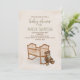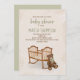 Esta design apresenta um berçário de chá de fraldas, elegante ursinho moderno de aquarela com o convite neutro de gênero, com uma rústica que podemos esperar, simples roteiro de caligrafia branca, fofo, com uma adorável peluche animal encharcado, pincelada tipografia de texto verde de sábio, com uma antiga besta de berço antiquado, doce mínimo minimalista de berço de madeira. belos convites para chuveiros de bebês, com um design de acabamento antiquado, trabalho de arte puxado à mão por Laura Lacina.