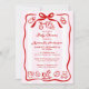Chá de fraldas branco vermelho e rosa com ilustrações lúdicas e listras verticais, perfeito para a celebração temática de uma menina. Apresentando uma vibrante borda desenhada à mão e arco com ícones de bebês como uma garrafa, pacificador, ursinho de pelúcia e cavalo de balanço, esta fofa design combina a arte moderna do escribble com elementos clássicos de bebê. O fundo cor-de-rosa contrasta maravilhosamente com a ousada linhagem vermelha e os sotaques, enquanto o quadro ondulado, solto, adiciona um sentimento diverso e casual ideal para encontros alegres. Na moda mix de fontes manuscritas dá ao layout um tom pessoal e alegre. Este convite de chá de fraldas feminino é ideal para celebrar uma futura mãe com uma estética doce e desenhada à mão que está em plena tendência com o popular estilo design de rabisco. Disponível como placas impressas ou um download digital instantâneo.