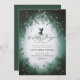 Uma ilustração encantadora de uma floresta mágica profunda de contos de fadas em verde esmeralda e aspergida com luzes de fadas e apresentando uma doce fada decora esse convite de chá elegante e moderno para garotinha com um tema de floresta encantada de fadas. Perfeito para uma mãe ser que ama a estética do núcleo fé, o tema da floresta encantada, o tema da fada e os conceitos do conto de fadas.