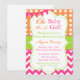 Convide seus convidados para o seu chá de fraldas de uma forma divertida com este convite personalizado cor-de-rosa, verde e tênue e bolinhas.