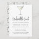Martini Cocktail Ilustração Casais Minimalistas Modernos Convite para Chás de casamento com uma ilustração divertida e um padrão de azeitona no verso.