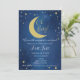 Chá de fraldas da Lua Celestial, convite para anunciar sua nova chegada com lua e estrelas, em marinho e ouro.