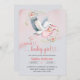 Convite Chá de Menina com Ilustração de Stork - Elegante