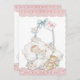 Adorável vintage cor-de-rosa, entrega especial, modelo de convite para chá de bebê. Esta bebê rosa bonito em uma cesta com ursinho bonitinho vintage bebê chá convite é facilmente personalizado para o seu evento, simplesmente escolhendo o botão "Personalizar!" para começar a adicionar detalhes do evento, estilo de fonte, tamanho de fonte e cor e texto. Observe que todos os adesivos, cartões e designs de convite que você encontrará no Zazzle são gráficos impressos sem joias reais, arcos, levantados, gravados, ou peças ou peças adicionadas.