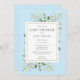 Apresentando delicadas folhas de aquarela em um fundo azul macio, este chá de bebê chic, borrifo ou chá pode ser personalizado com sua informação especial sobre chás de fraldas, com um fundo de sábio prateado no reverso. Projetado por Thisnotme©