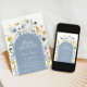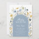 Chamado de chá de bebê de flores silvestres em azul de aço mudo. Belo design moderno elegante com sotaques botânicos pintados à mão. Possui flores silvestres de cor aquática delicada, arco de tendências e letra de script de tipografia. Tendy Bohemian é perfeito para um chá clássico de bebê. Você pode escolher convites impressos e/ou fazer o download instantâneo do modelo digital. Perfeito para uma comemoração de na moda.