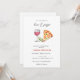 Convite de chá de noiva 'Amor e pizza' simples, elegante e moderno com pintura à mão de pizza em aquarela e taça de vinho.