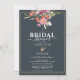Convite Chá de Noiva Azul Escuro, Floral Rosa e Dourado