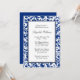 Convites de chá de noiva azul real e preto elegantes. Com um padrão moderno de damasco com redemoinho. Personalize facilmente!