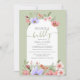 Convites de chá de noiva boho elegantes, apresentando delicadas flores silvestres em aquarela em tons de rosa, lilás e verde, um arco branco, texto em letra cursiva que diz 'brunch & bolhas' e um modelo de convite moderno. Todos os estilos de fonte são facilmente alterados clicando no link personalizar ainda mais após a personalização.