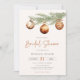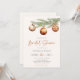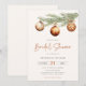 Convite minimalista neutro para Chá de Noiva com ramo de pinheiro aquarelado decorado com enfeites de bola de Natal.