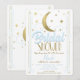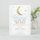 Convite Chá de Noiva Caprichoso Azul Claro Dourado Lua Est