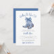Algo Azul Antes de Eu Me Casar! Convite de Chuveiro de Noiva Elegante com Bota de Cowboy. Celebre a noiva com um toque de charme country e sofisticação. Este convite apresenta um par de botas de cowboy azuis elegantes no topo, adornadas com um grande laço em aquarela. As botas são decoradas com um padrão floral ou inspirado em chinoiserie, adicionando um toque elegante ao tema rústico. A frase "Algo azul antes de eu me casar!" é escrita em uma mistura estilosa de fontes azul escuro e cinza, combinando caligrafia manuscrita e tipografia serif clássica para um visual moderno e sofisticado.