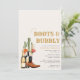 Vamos lá, garotas! Preparem-se para uma aventura selvagem no Velho Oeste! Este convite de Chá de Noiva com Botas e Espuma é perfeito para um chá de noiva ou noite de despedida de solteira com tema western. Único e original, apresentando cactos desenhados à mão e pintados à aquarela, botas de cowboy e chapéus que são fáceis de personalizar. Então coloque seu chapéu de cowboy e prepare-se para o último rodeio!