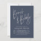 Um design simples e moderno com "Brunch & Bubbly" em letras manuscritas, com o nome da noiva abaixo em letras maiúsculas elegantes e abertas. A data da celebração aparece à esquerda em um layout empilhado com o local, endereço e informações de RSVP à direita. O verso dos cartões apresenta um elegante padrão floral desenhado à mão. Um design de caligrafia minimalista - com certeza combina com qualquer evento de brunch de noiva! A paleta de cores é uma combinação boho de creme e azul-marinho. Mais variantes de cores estão disponíveis em nossa loja. Sinta-se à vontade para me enviar uma mensagem com qualquer dúvida relacionada ao design!