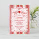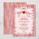 Convites de chá de panela românticos em vermelho e rosa com charme vintage são perfeitos para hospedar uma celebração pré-casamento elegante e memorável. Projetado para noivas que amam romance clássico com um toque de fantasia, este convite de chá de panela apresenta rabiscos, uma paleta de cores vermelha e rosada atemporal e um tema de cupido divertido para definir o tom de um evento sofisticado. A borda de listras desenhada à mão adiciona um charme retrô, mantendo-se fresca e feminina, tornando-a ideal para chás de panela tradicionais, brunchs temáticos do Dia dos Namorados ou celebrações íntimas com amigos e familiares próximos. Com sua combinação de estilo nostálgico e apelo moderno, este convite personalizável é perfeito para aqueles que planejam uma reunião de noivado emocionante que seja única e inesquecível. Seja você celebrando em casa, em um bar, café ou local privado, este design garante que seu evento seja pessoal, caloroso e perfeitamente temático. Uma escolha linda para anfitriões de noivado que buscam um convite que equilibre motivos de amor clássicos com design festivo e feminino.