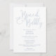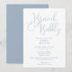 Este convite de chá de noiva elegante com escrita em azul poeirento e espumante pode ser personalizado com todas as informações do seu evento especial. Criado por Thisisnotme©