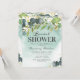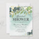Convites de chá de noiva de casamento moderno com uma lavagem de aquarela verde-azulada empoeirada, folhas botânicas verdes elegantes, respingos de folha de ouro falso e um modelo de festa de chá de noiva simples e fácil de personalizar.