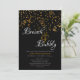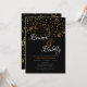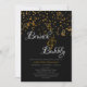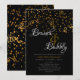 Este convite de chá de noiva preto, branco e dourado para brunch e espumante apresenta uma parte de trás de confetes dourados e uma borda dourada na frente. Preencha os campos de texto personalizáveis, remova qualquer texto e/ou clique em personalizar para selecionar uma cor, tamanho e estilo de letra de sua preferência.