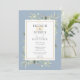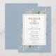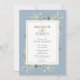 Com delicadas folhas de greenery aquarela e taças de champanhe, este convite chic de brunch e espumante para chá de noiva pode ser personalizado com as informações do seu evento de celebração especial, com um fundo azul poeira no verso. Criado por Thisisnotme©