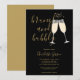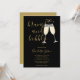 Um convite elegante de café da manhã e chá de noiva com champanhe, apresentando taças de champanhe e nome em letra cursiva, este convite sofisticado pode ser personalizado com suas informações em letras douradas elegantes em fundo preto. Projetado por Thisisnotme©