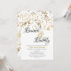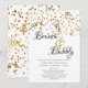 Este convite de chá de noiva preto, branco e dourado com brunch e espumante apresenta uma parte de trás com confetes dourados e uma borda dourada na frente. Preencha os campos de texto personalizáveis, remova qualquer texto e/ou clique em personalizar para selecionar uma cor, tamanho e estilo de letra de sua preferência.