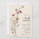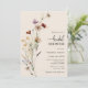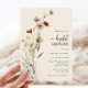 Convite de Chá de Noiva Floral Boho Elegante. Este convite de chá de noiva elegante e sofisticado apresenta belas flores silvestres pintadas à mão em aquarela, dispostas como um lindo buquê, e uma caligrafia elegante perfeita para casamentos na primavera, verão ou outono. Encontre itens correspondentes na Coleção de Casamento Boho Wildflower.