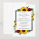Girassóis rústicos, rosas vermelhas, margaridas brancas