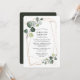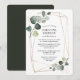 Elegante convite de chá de noiva com moldura geométrica dourada, eucalipto em aquarela, verde botânico e toque de dourado, tornando-o simples, chique e lindo, que seus convidados vão adorar receber. No verso do convite há um verde pinho sólido.
