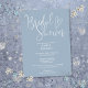 Este convite de chá de noiva elegante em azul poeira com letra de traço pode ser personalizado com todas as informações do seu evento especial. Criado por Thisisnotme©