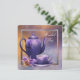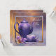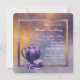 Um belo convite de festas de chá de noiva roxo e ouro apresenta um elegante fundo de água roxo e dourado com um elegante bule de porcelana roxo e um teacup com flores de orquídea roxa e dourada. Este belo convite de festas de ouro e chá roxo funciona bem para um convite de festas de chá à tarde, convite de festas de chá de noiva ou qualquer outra festa ou evento especial e é facilmente personalizado escolhendo simplesmente o botão laranja "Personalizar!" para começar a adicionar os detalhes do evento, estilo de fonte, tamanho de fonte e cor e texto. Observe que todos os designs de cartas e convites que você encontrará no Zazzle são gráficos impressos sem joias reais, arcos, levantados, gravados em relevo ou peças ou peças adicionadas.