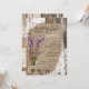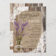 Design de cartão de chá de noiva country western rústico com lavandas em jarra de pedreiro com aniagem e renda amarrada em cordel e renda branca sobre tábuas de madeira envelhecidas.