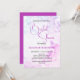 Este convite de chá de noiva com fundo floral roxo pastel oferece todos os detalhes na frente com um verso roxo escuro sólido correspondente. Preencha os campos de texto personalizáveis, remova qualquer texto e/ou edite usando a ferramenta de design para selecionar a cor, tamanho e estilo da fonte de sua preferência.