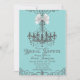 Convite Chá de Noiva Turquesa e Prata com Laço Branco