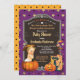 Perfeito para outono, época de Halloween.Receba este convite bonito agora! Tema: Halloween - truque ou trato.Estilo: Vintage retro com um toque de chic moderno.Cores: Roxo, ouro, laranja, preto.Gráficos: abóboras, saco de tratamento, doces, estrelas douradas e quadro retro (estão disponíveis em compro outras tonalidades da pele e sexo)