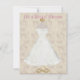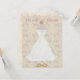Chá de panela elegante feito em um fundo floral bege e cor-de-rosa macio, com gráficos de um vestido de casamento branco em um suporte dourado. Personalize todas as áreas de texto no traseiro e dianteiro deste grande cartão para serir suas necessidades. Mude o estilo de pia batismal, o tamanho, e as cores demasiado se você quer.