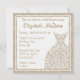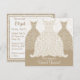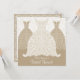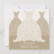 O vestido de noiva e de noiva estilizado e vestidos de damas de honra em branco e esticados. Personalize com seu próprio texto. Ilustração original por pj_design. O convite para apresentação de noivas apresenta um vestido de noiva de lacy altamente estilizado e vestidos de damas de honra decorados com pombinhos, videiras e bagas. Decorado com um fundo cor damasco.