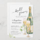 Chá de panela em estilo delicado, elegante, minimalista, com uma encantadora ilustração aquática de uma garrafa de vinho e de óculos de vinho.