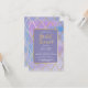 Estes elegante, 3,5" x 5" (pequeno) e chá de panela moderno caracterizam um fundo pintado à mão da aguarela das máscaras de azul, do roxo e do rosa. Igualmente caracteriza as palavras "chá de panela" em uma pia batismal moderna do ouro, junto com um quadro do ouro e uma linha de harmonização teste padrão. Uma maneira bonita e elegante a convida convidados a seu evento especial do pre-casamento.