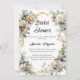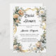 Um fundo branco chic. Decorados com os florais brancos e amarelos e uma fita de ouro. Personalize e adicione o nome da Noiva a ser e detalhes.