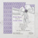 A lavanda bonita e o branco coloriram o chá de panela, com um laço branco como o design, sobre um fundo colorido marfim. Um fundo da lavanda, com a folha de prova branca do laço, na parte superior do convite e do verso. Os gráficos de uma fita e de um arco brancos, na parte superior, são decorados com um tom e uma ametista de prata bonito como a jóia. Personalize todo o texto para serir seu evento especial. Convite que bonito da lembrança a noiva a ser amará.